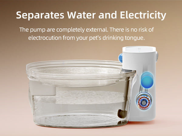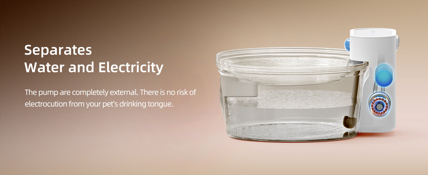 The pump is not in the water, making it electricity safe and avoids pollutants. The separation design also makes it easy to clean and maintain. Water level window facilitates timely water replenishment.