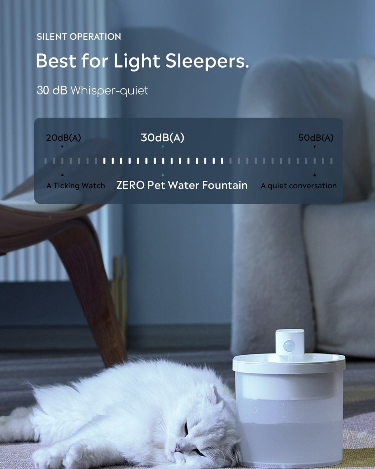 Say goodbye to the constant whirring of the ordinary drinking fountain. With the ZERO cat water fountain's ultra-quiet performance, you can easily have a sound sleep, and your cat can take all the time he needs to drink his water. Plus, timid cats will never be deterred by the noise again!