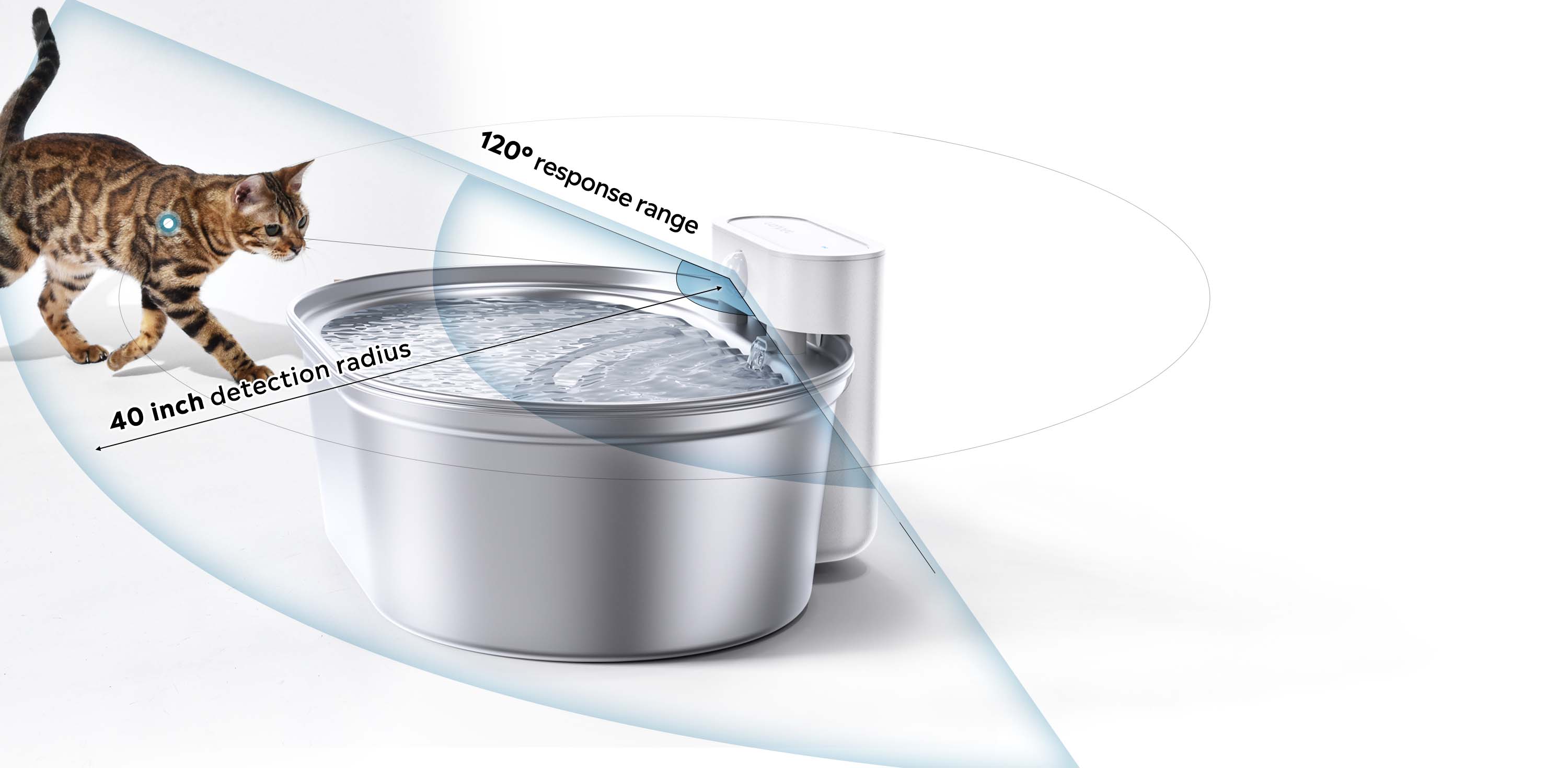 Designed with thoughtfulness, water gently glides along the inner wall of the bowl, reducing noise to under 30 dB. It seamlessly fits into your home, like a quiet helper. All you'll hear are the soothing purrs of content pets.