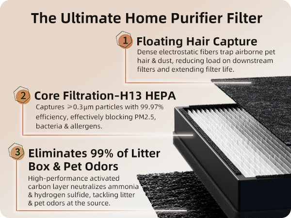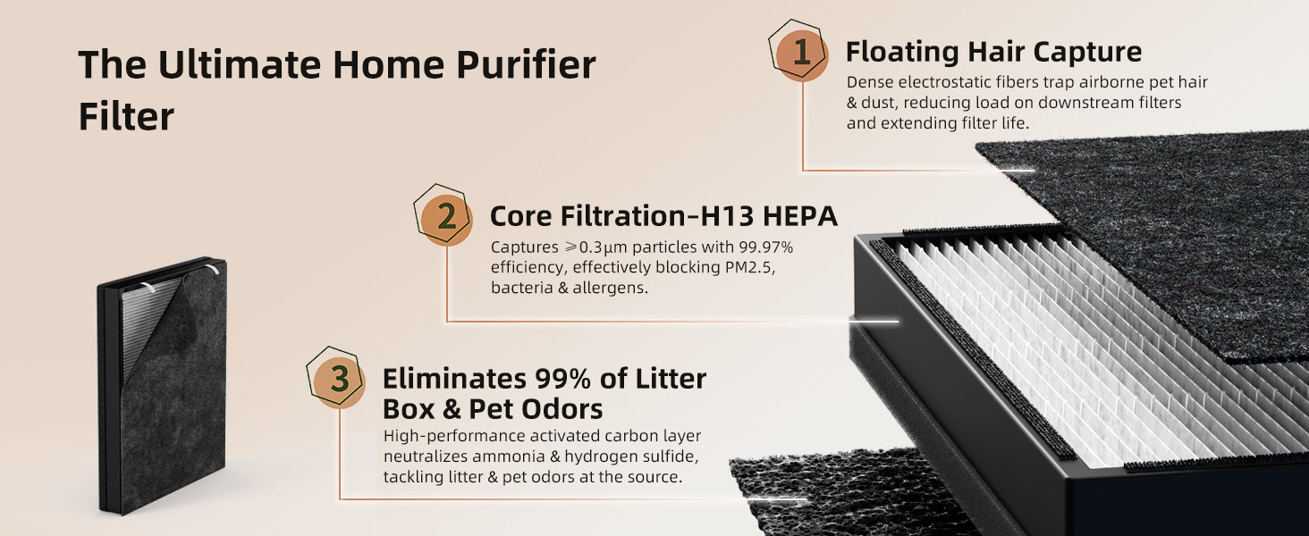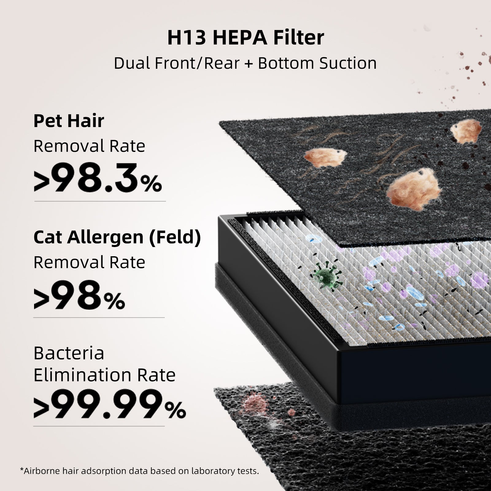 • Washable Pre-Filter • Dual H13 HEPA Filters