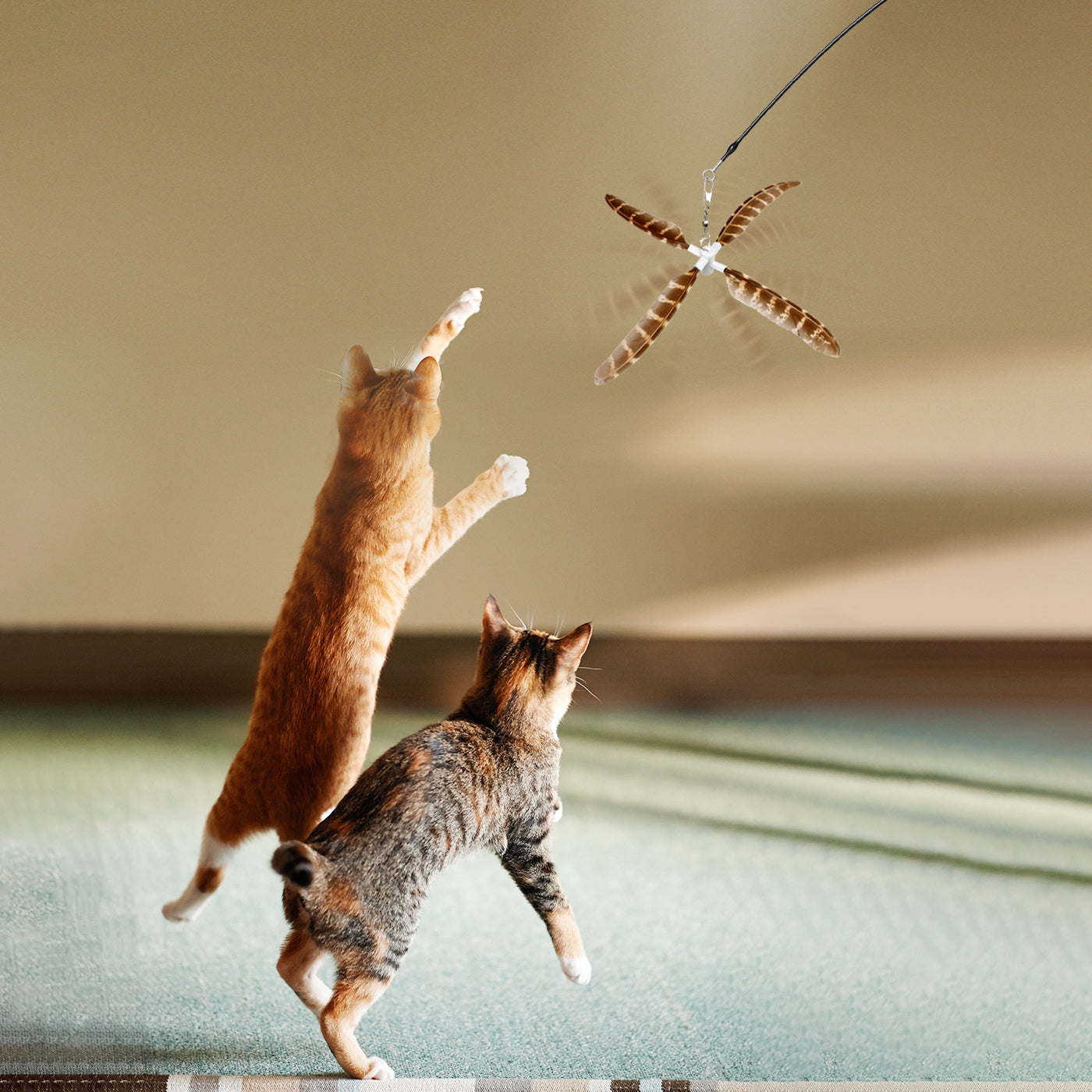 Weighing only 23g (0.05 lbs), our teaser wand cat toy makes it effortless to play with your cat. Just move the wand, dangle the toy, and watch your cat go crazy for hours while you keep scrolling on your phone or enjoy your chill time on the couch.