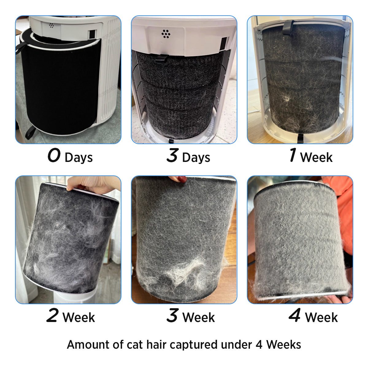 It is recommended to replace it every 3-4 weeks to fully extend the lifespan of the core filter, and also replace according to the amount of hair absorbed by cotton pre-filter.