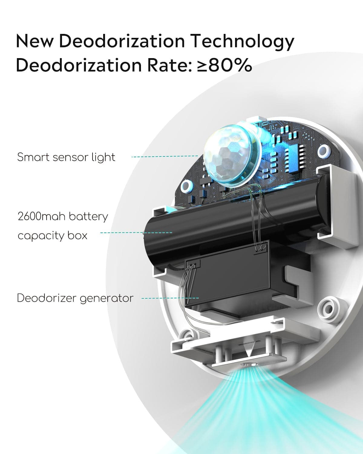 uahpet's litter box deodorizer contains a negative ion generator that releases deodorizing and dust-reducing negative ions and helps reduce the dust on the surface of cat litter by 99.99%.