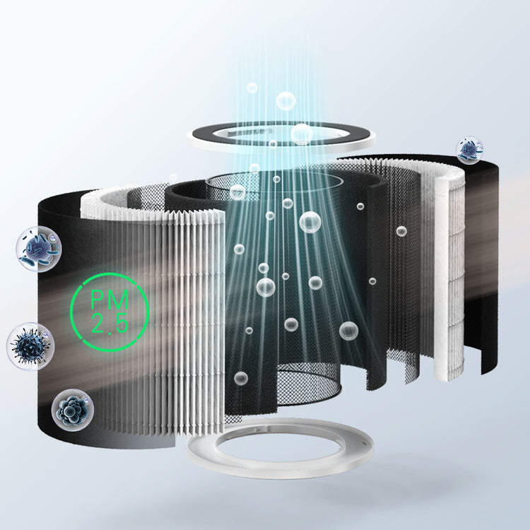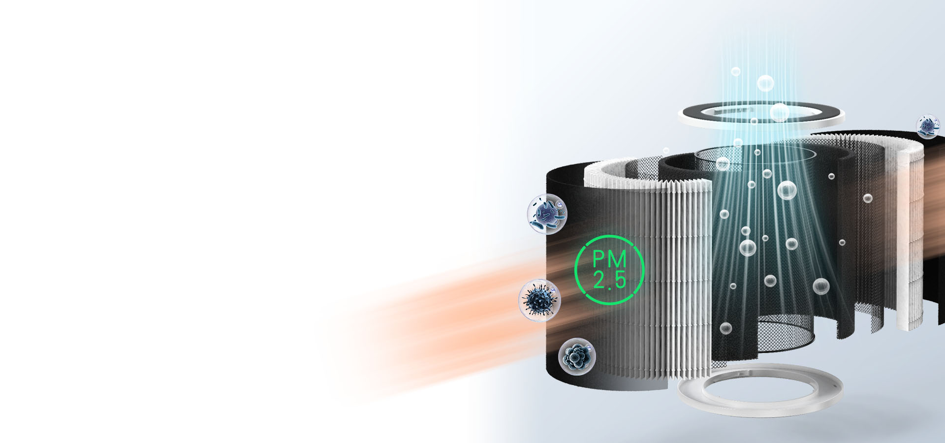 Our air purifier employs specialized deodorization technology tailored for pet families, efficiently adsorbing ammonia, acetic acid, hydrogen sulfide, trimethylamine, and methyl mercaptan. Additionally, the H13 HEPA filter targets cat allergen Feld1.