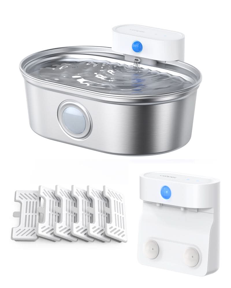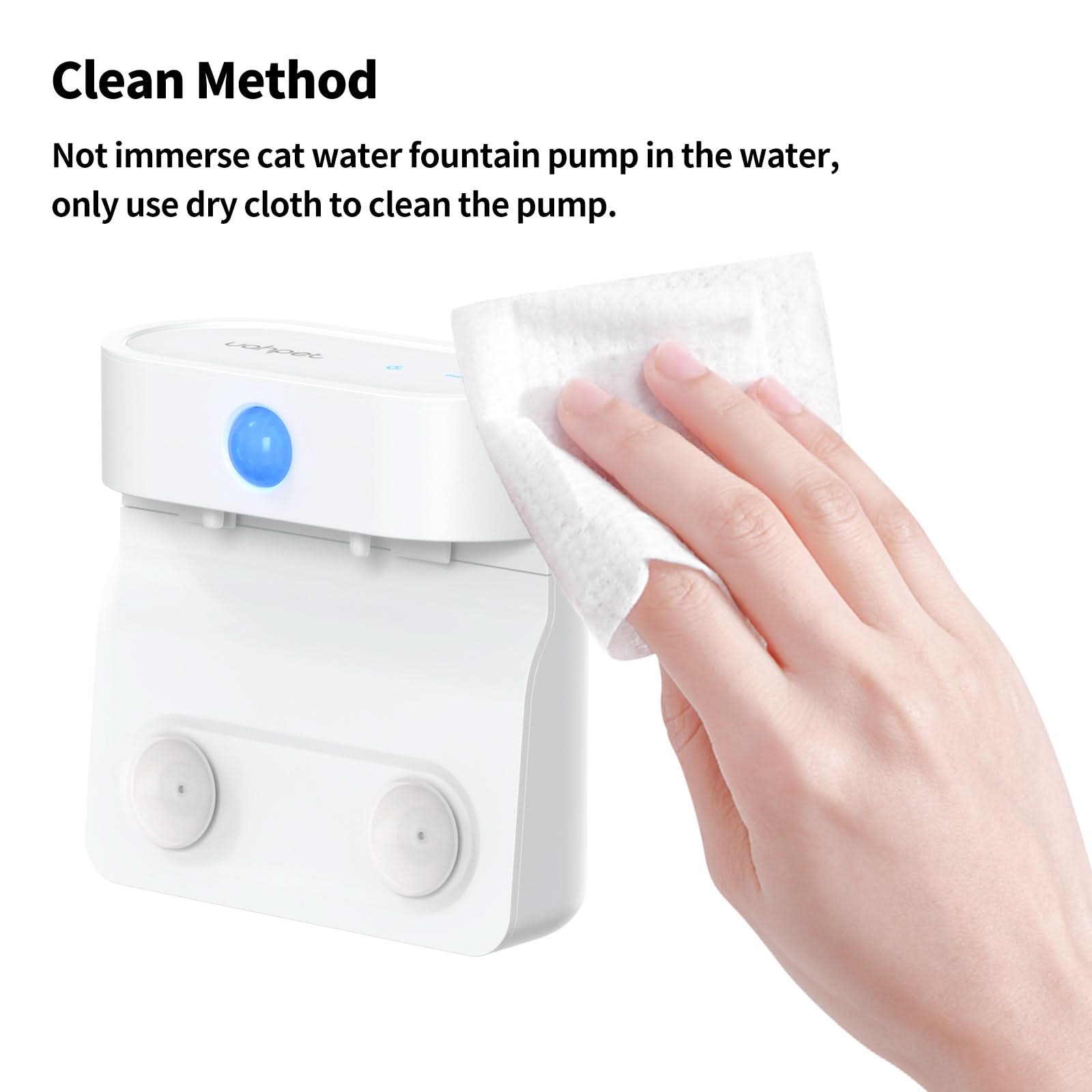 No wires required, the Uahpet cordless cat water fountain uses a large capacity rechargeable battery and can be placed anywhere, creating a quieter and more peaceful pet drinking environment, no need to worry about electric shocks, power outages, or running out of water while away.