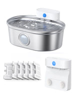 The pet water fountain uses high-quality, food grade 304 stainless steel that's easy to clean and won't crack, not absorb odors. The wide, shallow tray avoid your cat's whiskers touching the edges and provides a 320ml capacity that avoids them drinking bottom dirty water.